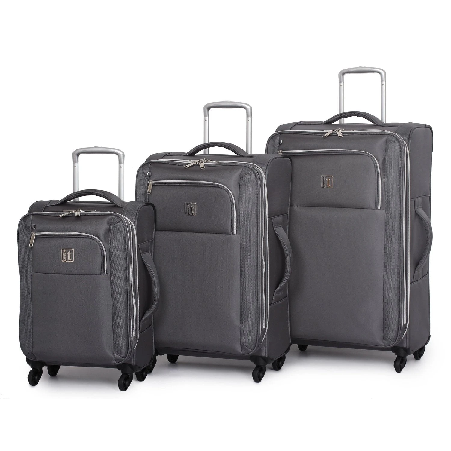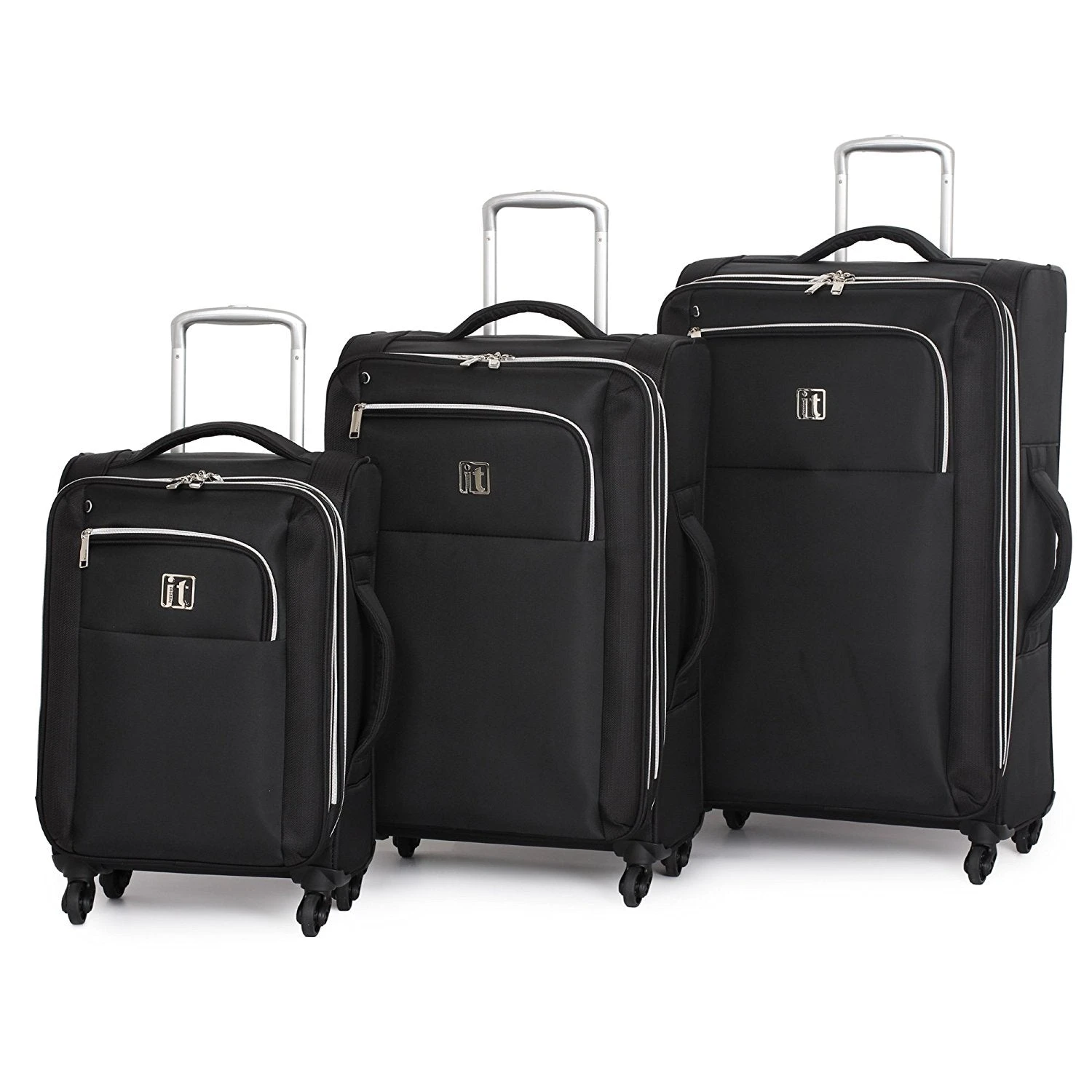 The it luggage megalite x-weave collection is made of high density polyester fabric. This 3-piece luggage set is detailed with 4 multi-directional spinner wheels that rotates 360 degrees for easy maneuverability, a push-button retractable telescopic handle along with soft touch ergonomic top and side carry handles. The rubberized corner protectors provide exceptional protection from wear and tear. The interior includes tie-down straps and a a zippered mesh lid pocket while the exterior offers 2-zippered front pockets for added storage. A perfect ultra lightweight luggage set for all sorts of overnight trips or extended journeys.